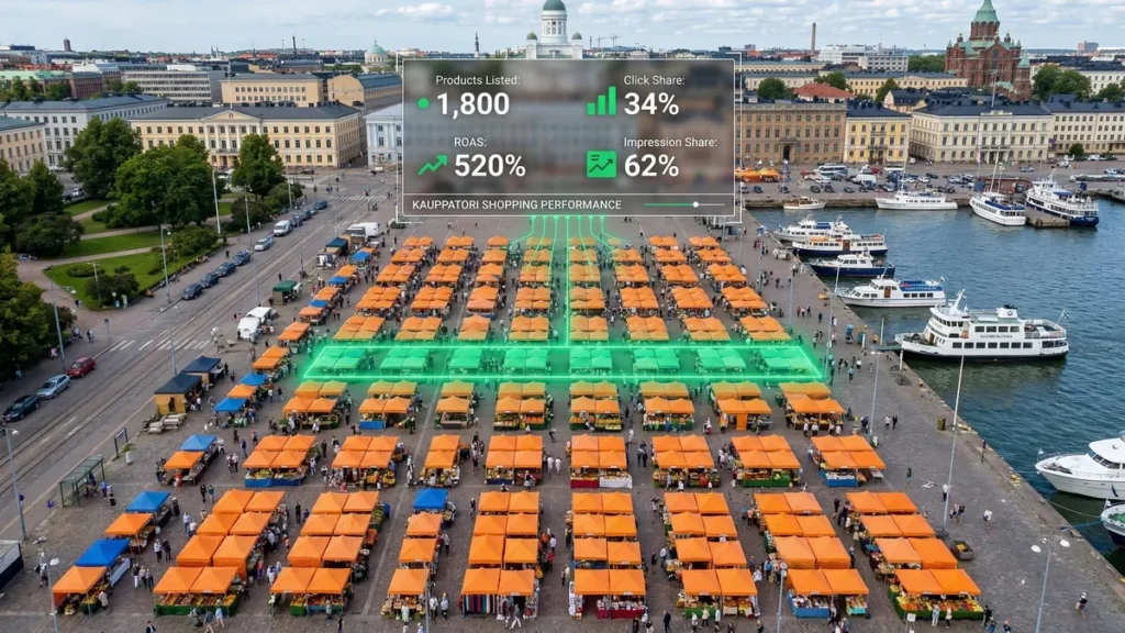 Google Shopping on Googlen tuotemainosalusta, joka näyttää visuaalisia tuotemainoksia suoraan hakutuloksissa kuvan, hinnan ja kaupan nimen kera. Se on yksi tehokkaimmista verkkokauppamainonnan kanavista: Google Shopping -mainokset konvertoivat tutkimusten mukaan jopa 26 % paremmin ja ovat 23 % edullisempia mainostajalle kuin perinteiset tekstimainokset (Google Economic Impact Report).