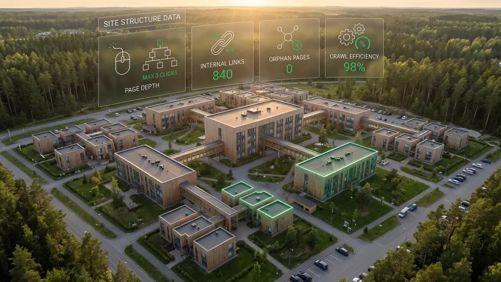 Verkkosivuston rakenne vaikuttaa sekä käyttökokemukseen että hakukonenäkyvyyteen. Selkeä hierarkia ja sisäinen linkitys auttavat sekä kävijöitä että hakukoneita.